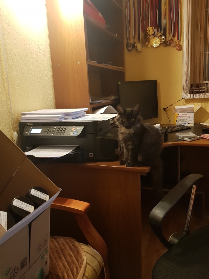 Очень любознательна, может наблюдать , как печатает принтер непрерывно пока все 150 листов книги не печатаются.