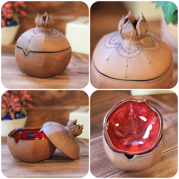 Так выглядит гранат, покрытый глазурью до обжига. Затем изделия снова сутки обжигаются в шайтан печи, и вуаля!