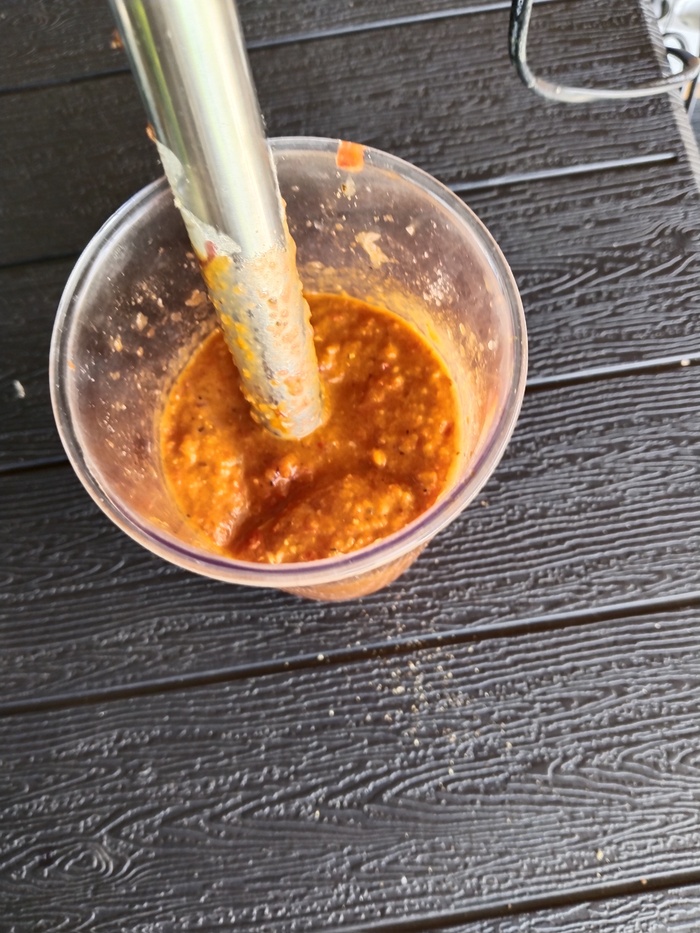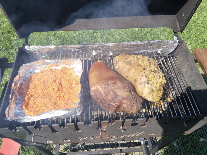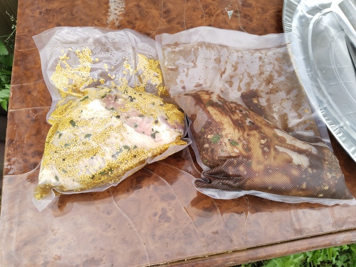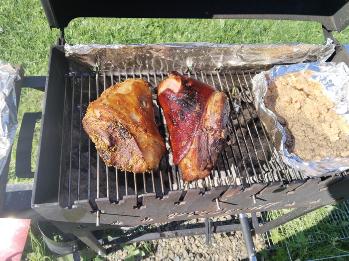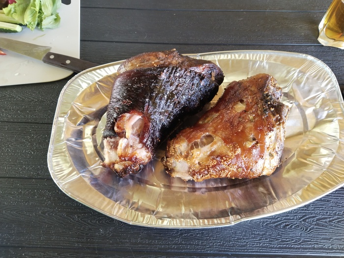 На этих выходных решили с женой замутить рульку на мангале. Про маринад толком не знаю, мариновала жена пока я был на работе. Первая: соль, перец, уксус яблочный, соевый соус, чеснок, зерновая горчица, душистый перец, лавровый лист. Вторая: соль, перец, соевый соус, кизиловый соус, томатная паста, экстракт чеснока. Все это было сделано в пятницу и закрыто в вакуум.