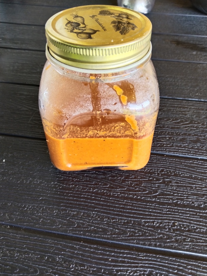 После прогрева сливаем в стерилизованную банку. Получилось около 100 грамм соуса с ориентировочной остротой 5000-7000 SHU.