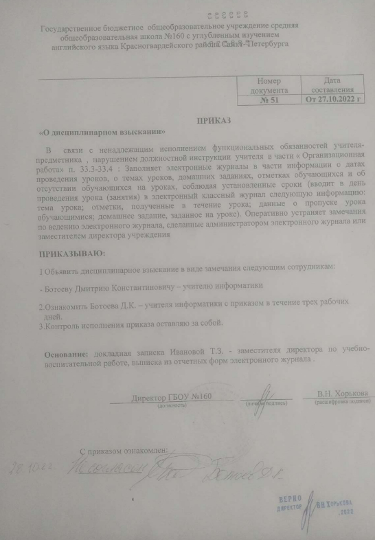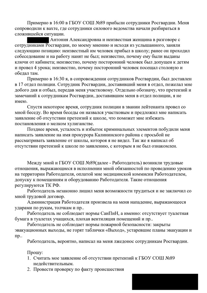 По совету Mgryksdf пишу полное наименование организации, где произошла эта история: Государственное бюджетное общеобразовательное учреждение средняя общеобразовательная школа №89 Калининского района Санкт-Петербурга