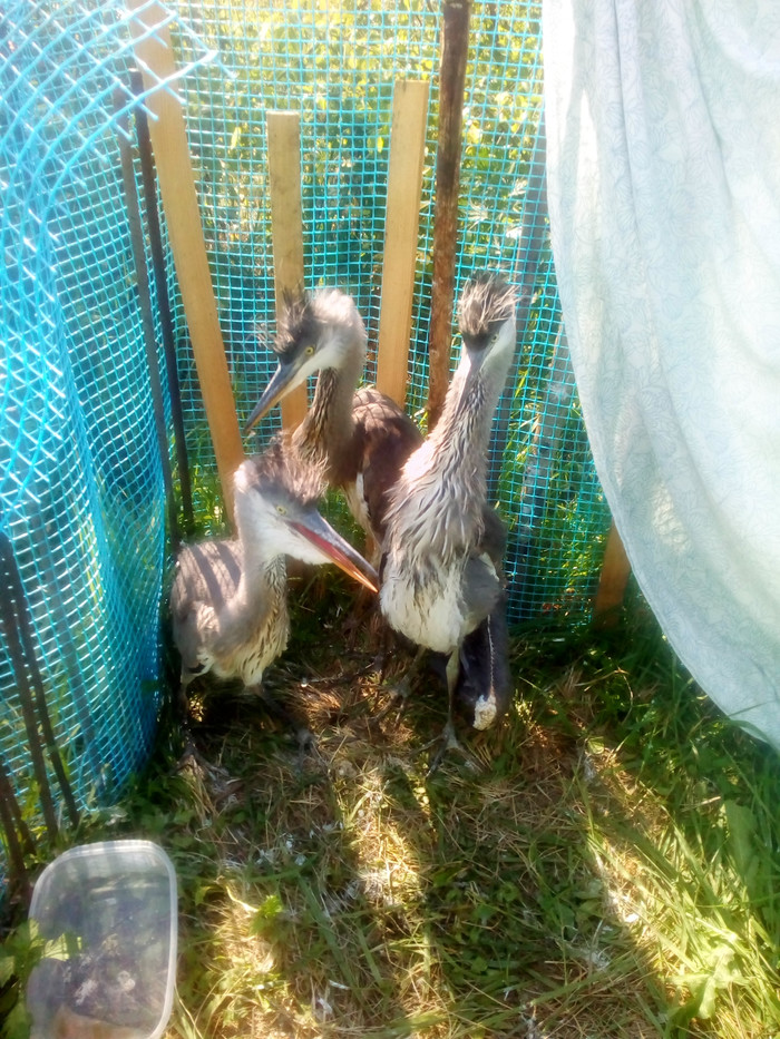 В начале июня к нам обратились за помощью работники завода, на территории которого находится часть леса, в котором располагается крупная колония цапель. Они уже пару лет пытались выкармливать выпадающих птенцов сами, но, увы, им это ни разу не удавалось успешно сделать.