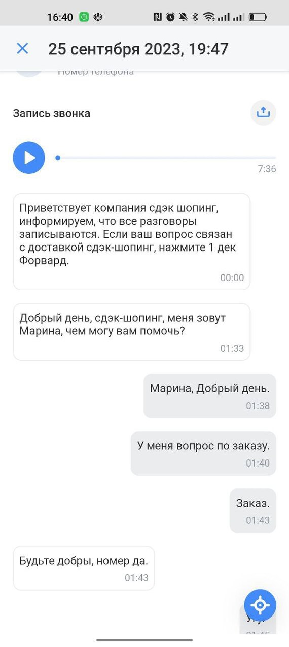 В скринах представлена только часть диалога, целиком он расположен на яндекс диске, в т.ч. в аудиоформате (ответили мне на 01:33, затем на 03:45)