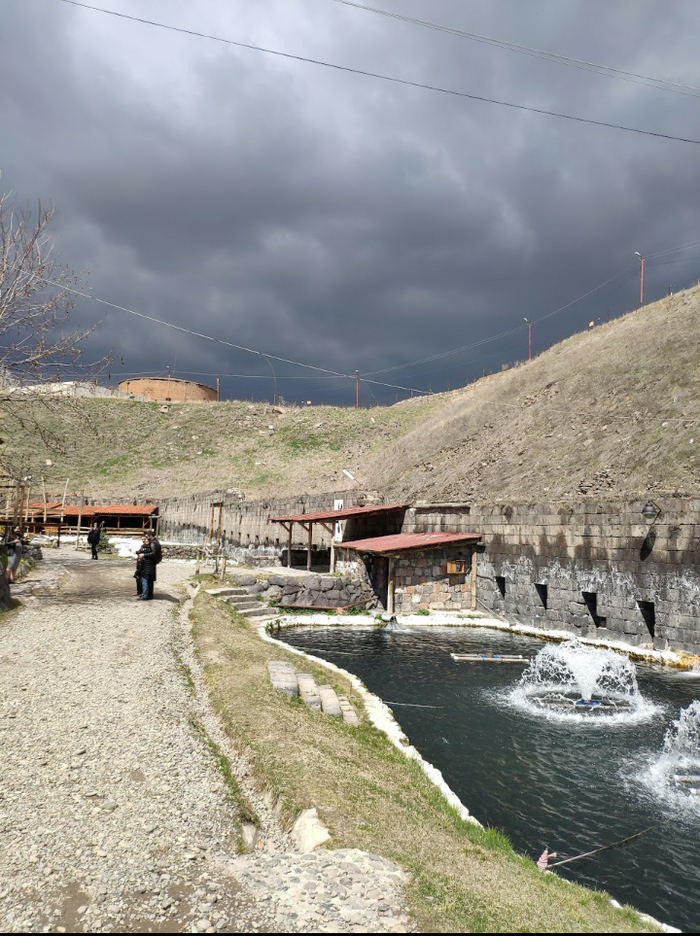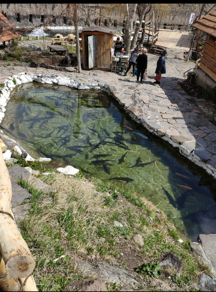 Но нам уже заранее сказали, что есть одна действительно запоминающаяся довольно старая коммерческая достопримечательность - рыбный ресторан Черкези Дзор, в котором они сами разводят осетров и форель, при тебе ловят и делают из них шашлык(да да, у армян из любого продукта выходит только шашлык).