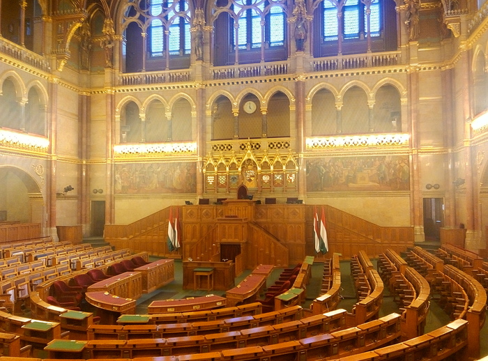 Бывший зал Верхней палаты, ранее венгерский парламент был двухпалатным и состоял из палаты магнатов и палаты депутатов. Сейчас это зал конференций и совещаний. Зал отделан панелями из славянского дуба, позолоченными украшениями, обладает отличной акустикой и украшен несколькими этажами галерей. Сиденья в зале расположены в форме подковы.