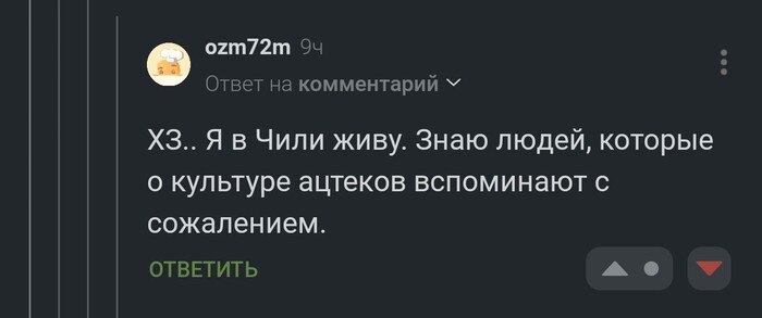 Действительно. Многие ли из нас задумываются над тем, как жили раньше ацтеки? Какое наследие оставили они? Уважаемый ozm72m, если будет возможность, ждем откликов живых жителей родной чилийской глубинки.