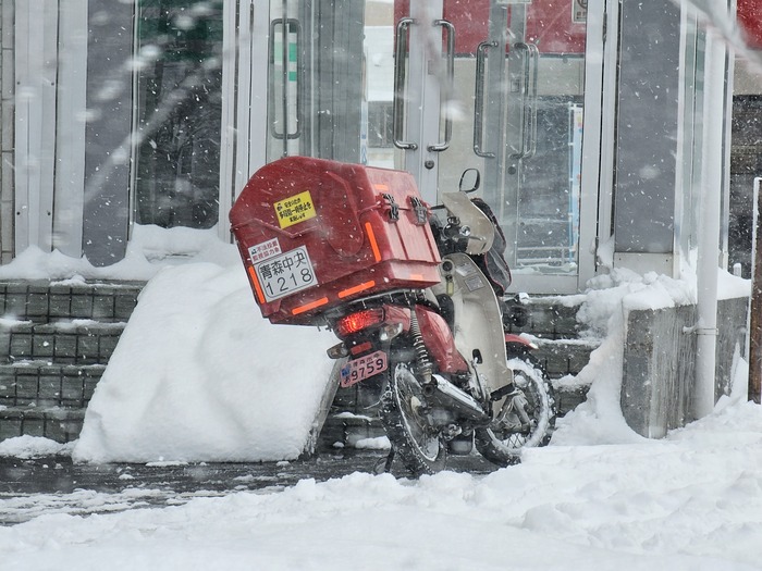 Японская почта ездит на мопедах в любую погоду и они обязаны доставить почту несмотря ни на что. Или позор клану. Всё как у настоящих самураев.