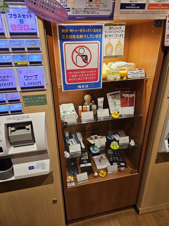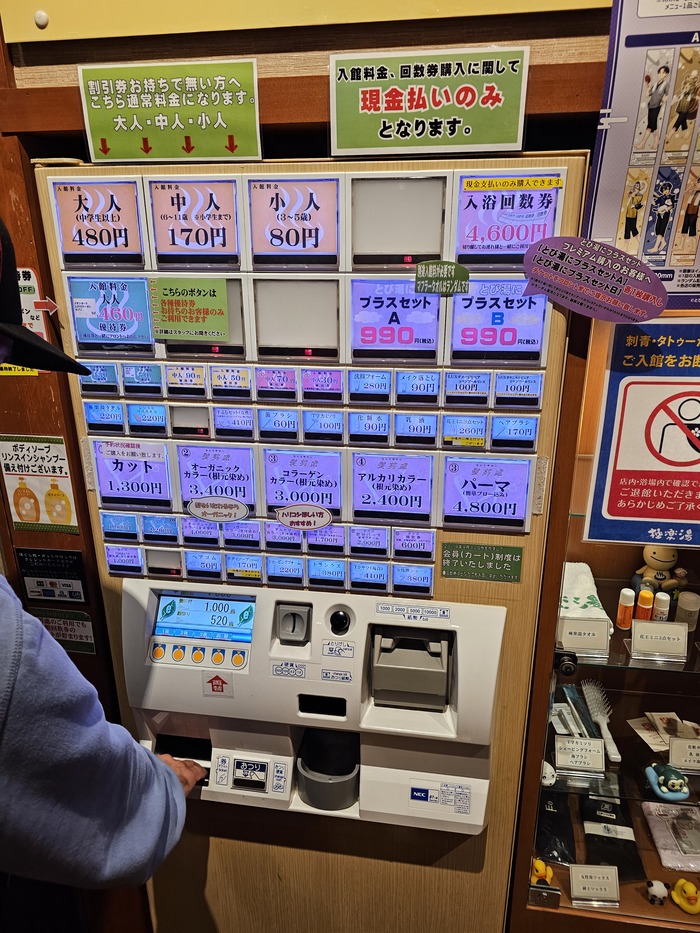 Баня наполовину автоматизирована - оплата услуг осуществляется через такой автомат. Здесь оплачивается вход в баню и полотенце, если у вас его нет. Также есть всякие доп услуги - массажи, СПА и т.п. Европейские карты такой автомат не принимает и приходится платить кешем. Вообще, в Японию вам понадобиться очень много кеша, т.к. далеко не в каждом месте есть терминал оплаты картами. Чем дальше от Токио, чем меньше терминалов.