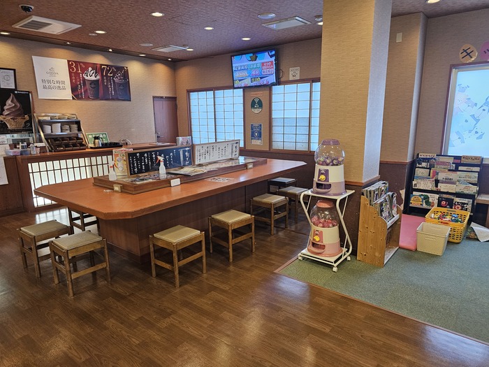 Также в бане есть зона отдыха с кафе, где можно посидеть, почилить, перекусить местной еды, которая выставлена на витрине для обозрения.