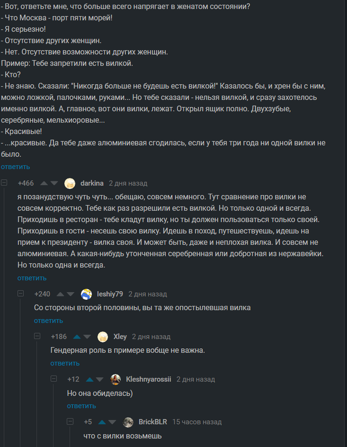 48 DoctorZloy Все мы вилки 6 лет назад #comment_142953601 Показать полностью 1 Комментарии на Пикабу Картинка с текстом О чем говорят мужчины Юмор Скриншот