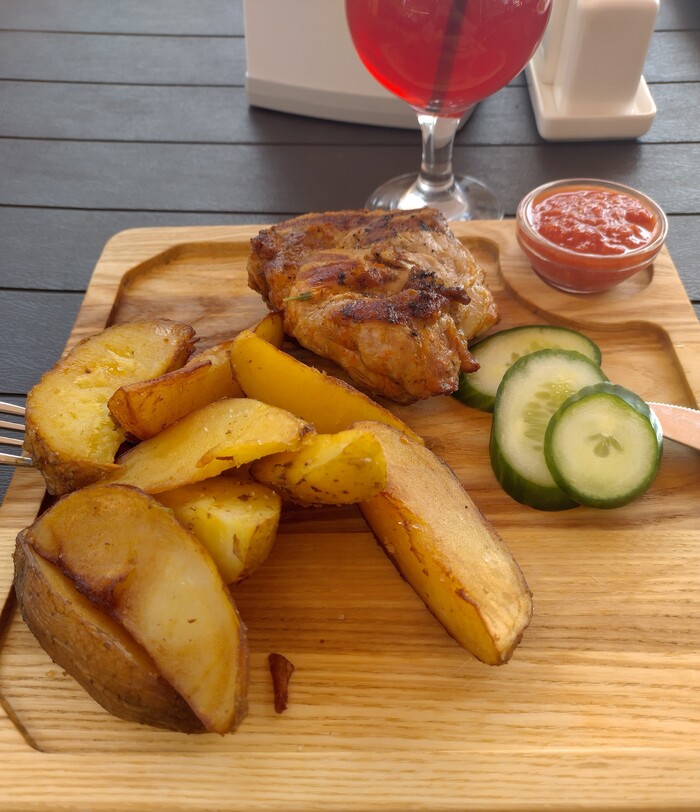 Отужинать я изволила в ресторане Хмель. Товарищи, однозначно советую. Строганина из оленины просто шик, а стейк из свинины крайне сочный и мягкий