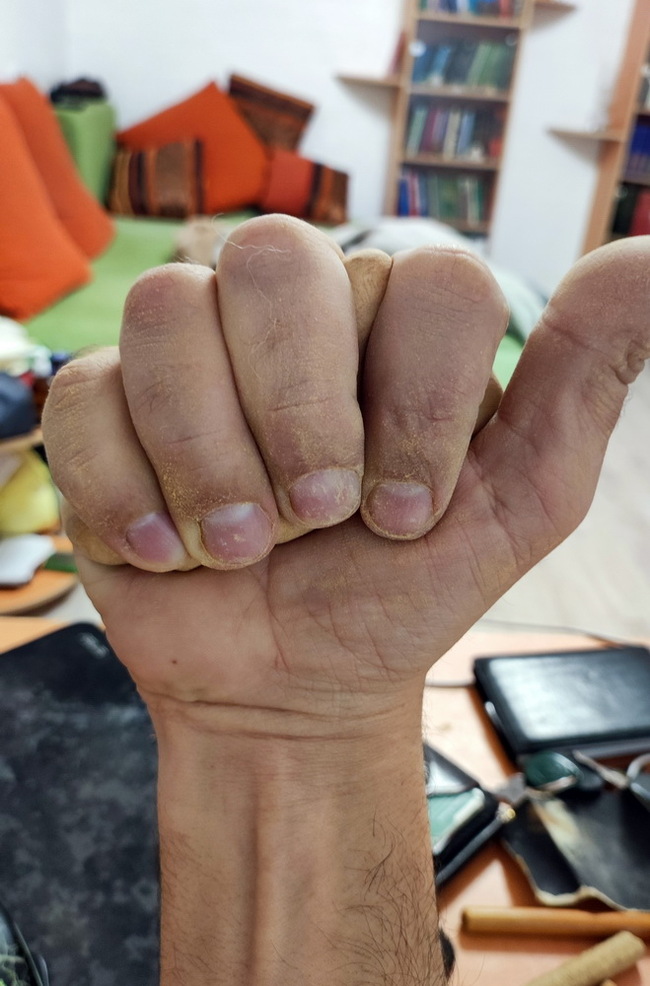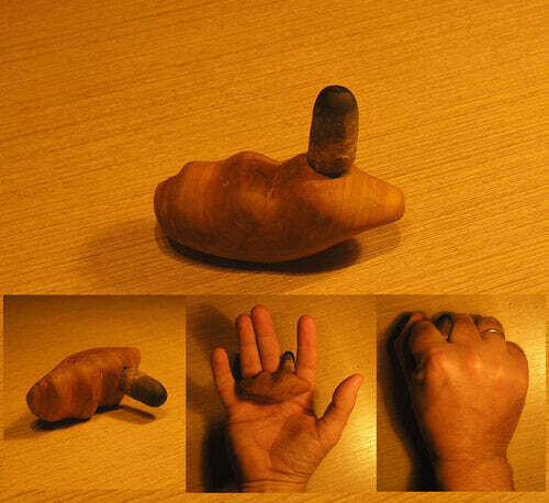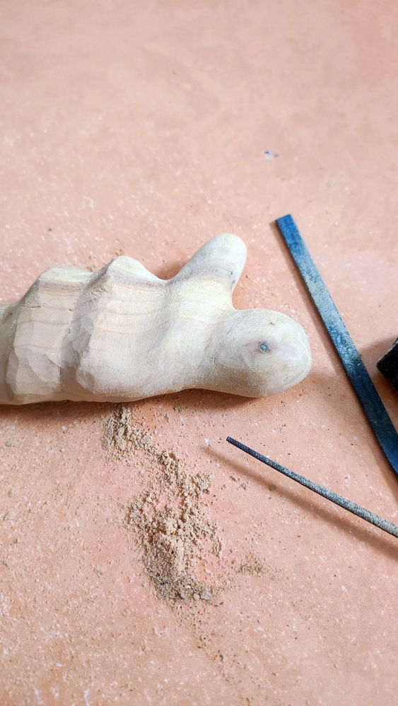 Что бы "дуля" лежала в ладони идеально, я заставил дочерь сжать кулак и выдавить из воска матрицу.