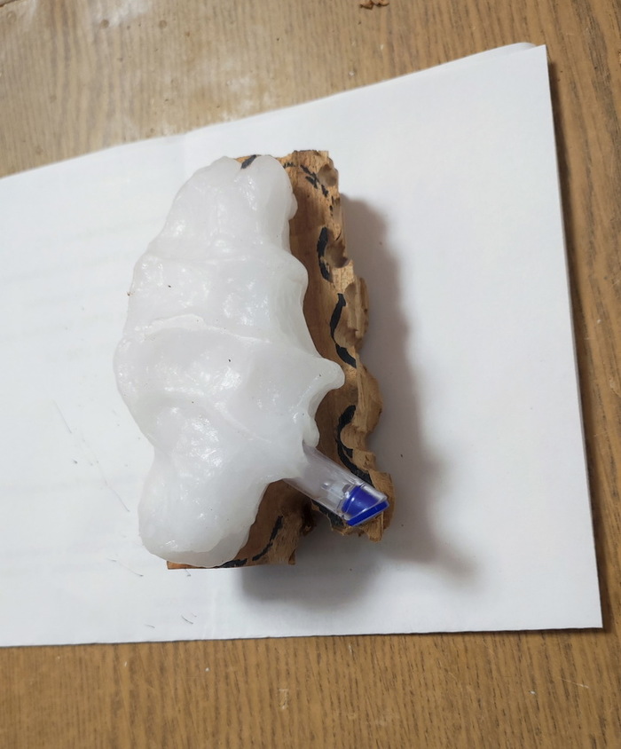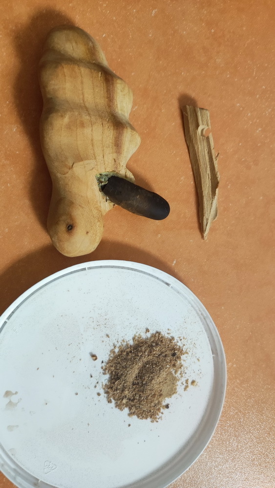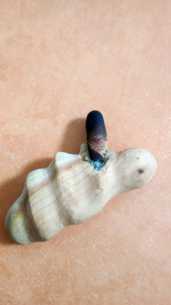 Ну что ж. Задача усложняется, но еще не все потеряно. Просто нужно эбонитовую палочку резцами подогнать под все вогнутости и выпуклости деревяшки. Если будет плотно прилегать, будет и крепко держаться...