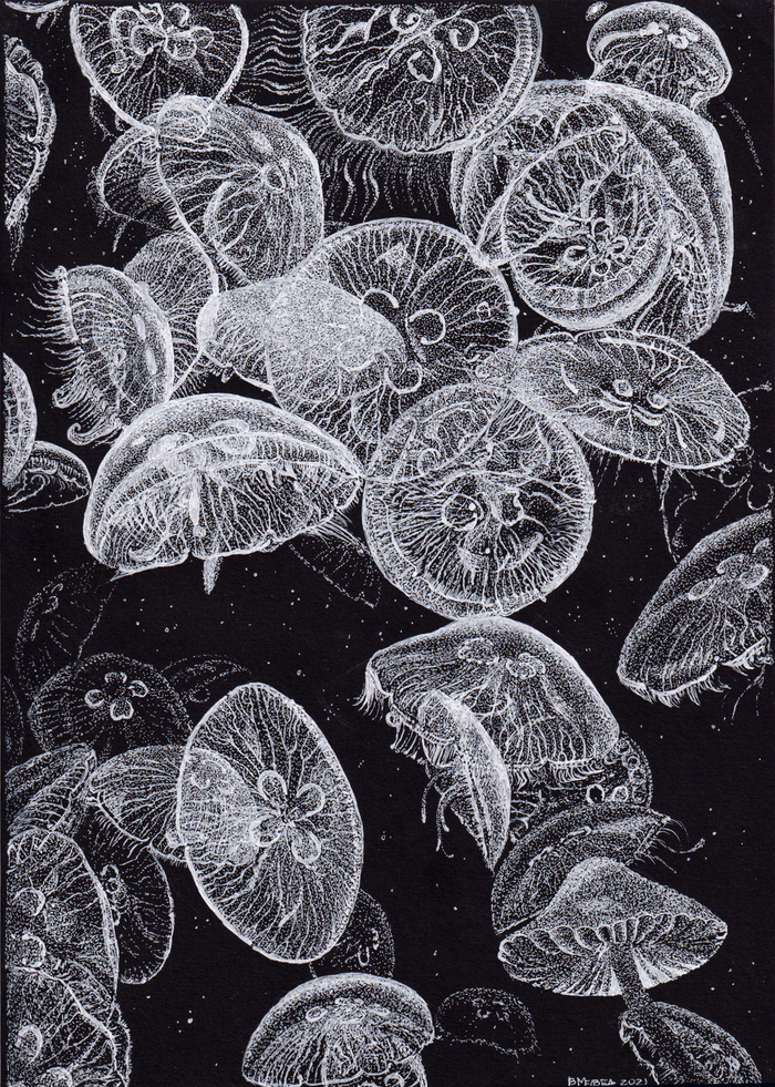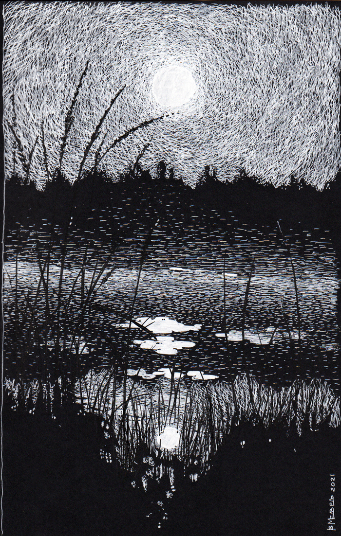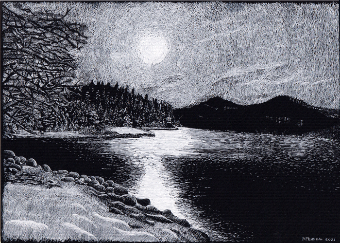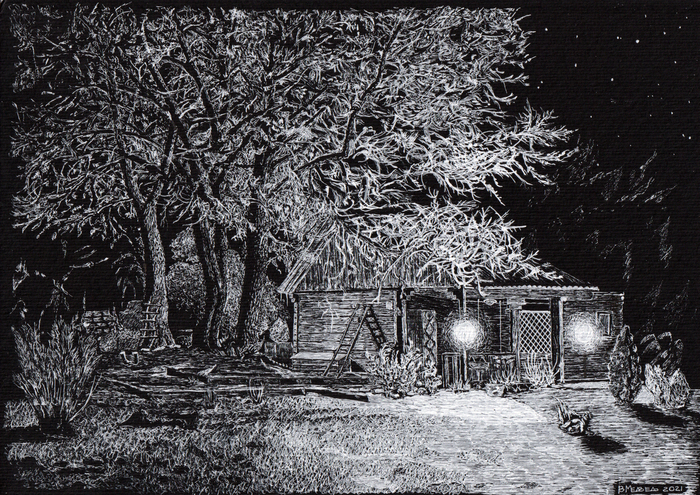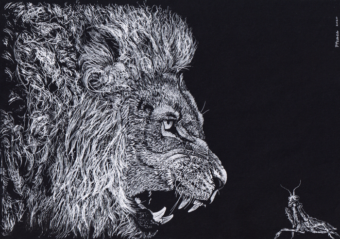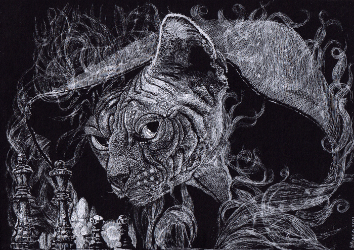 - Кольчужка маловата, - подумал я и выпрыгнул из скетчбука 12х12 см сразу в А4. Черный картон, белая гелевая ручка