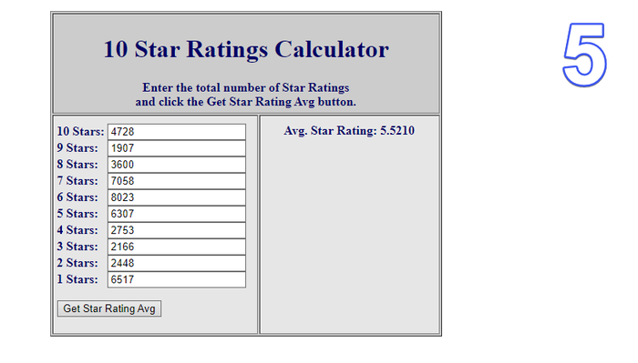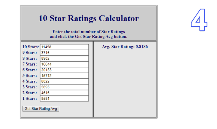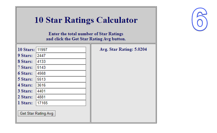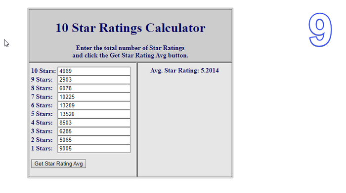 Заметьте... я вбил значения и получил примерно тот же рейтинг (там не учитываются сотые, а потому могут быть отклонения в 0.09 баллов максимум.