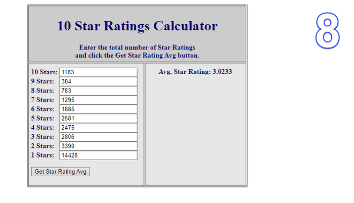 Тут явно заметно что реальный рейтинг ниже на 0.9 балла!!!