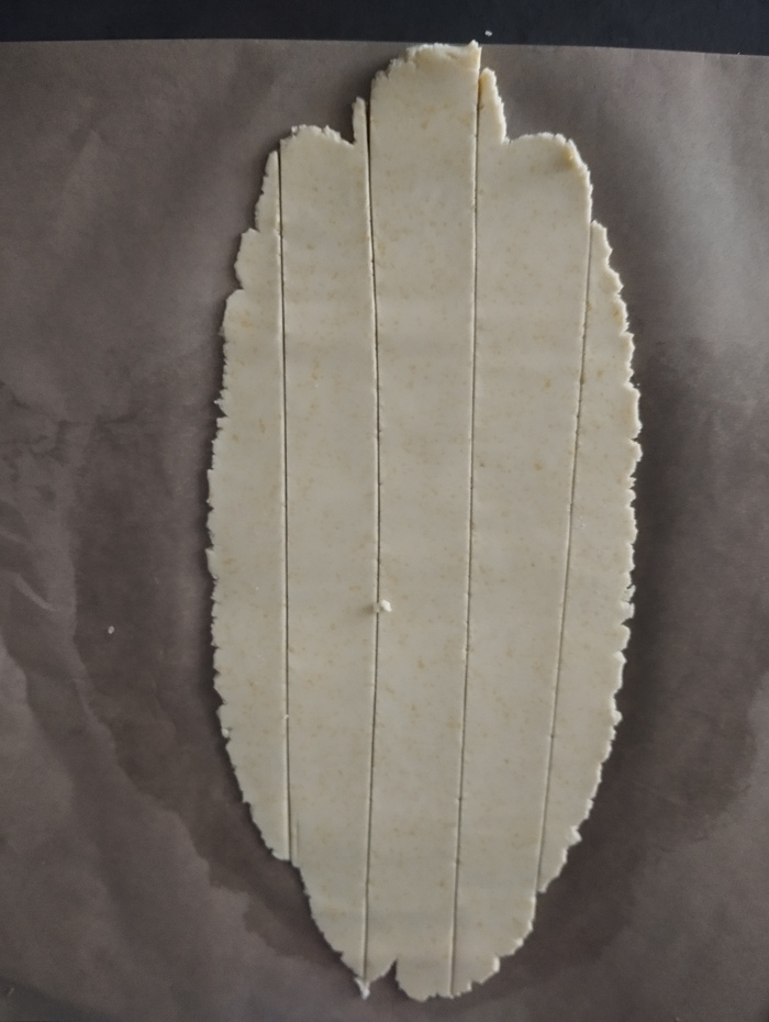 Теперь нужно сделать бортики. Раскатываем тесто и режем его на полоски.