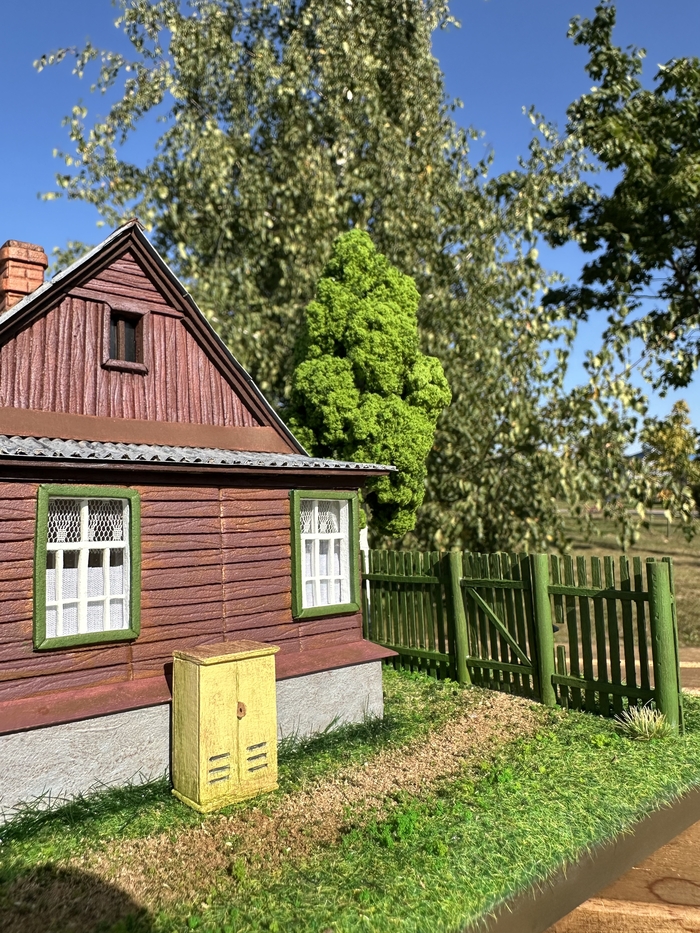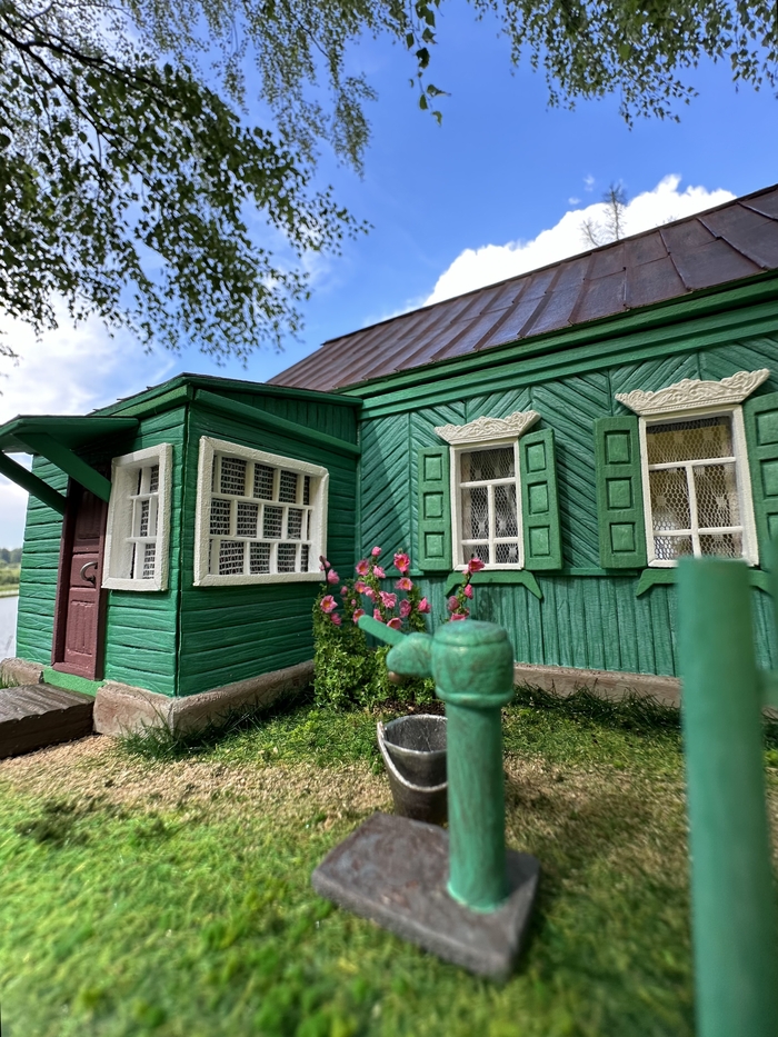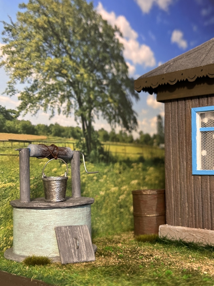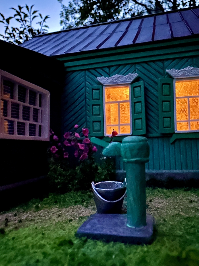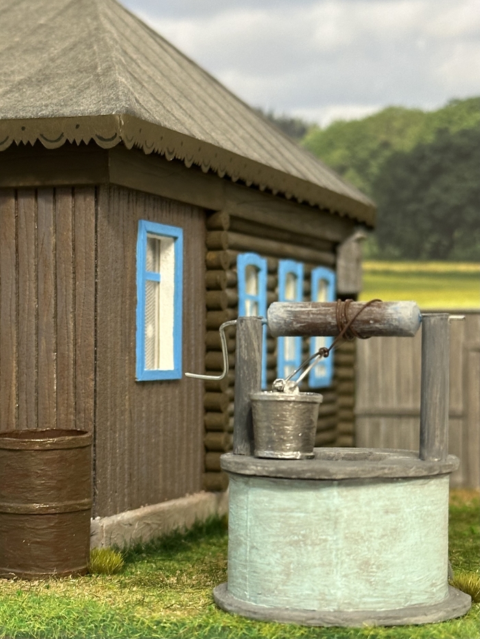 Нет, его конечно же не было на этом месте в жизни, он был чуть дальше за забором, но место на макете очень ограничено, а колодец хочется, тем более, что он функционирующий) ручку можно покрутить, ведро опускается, и можно «подчерпнуть воды»