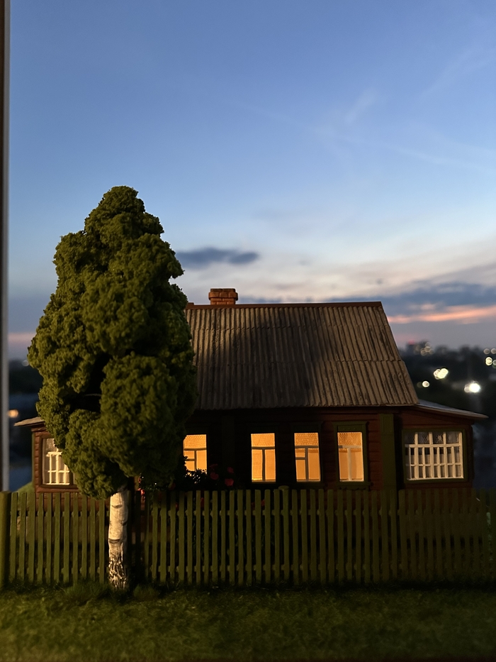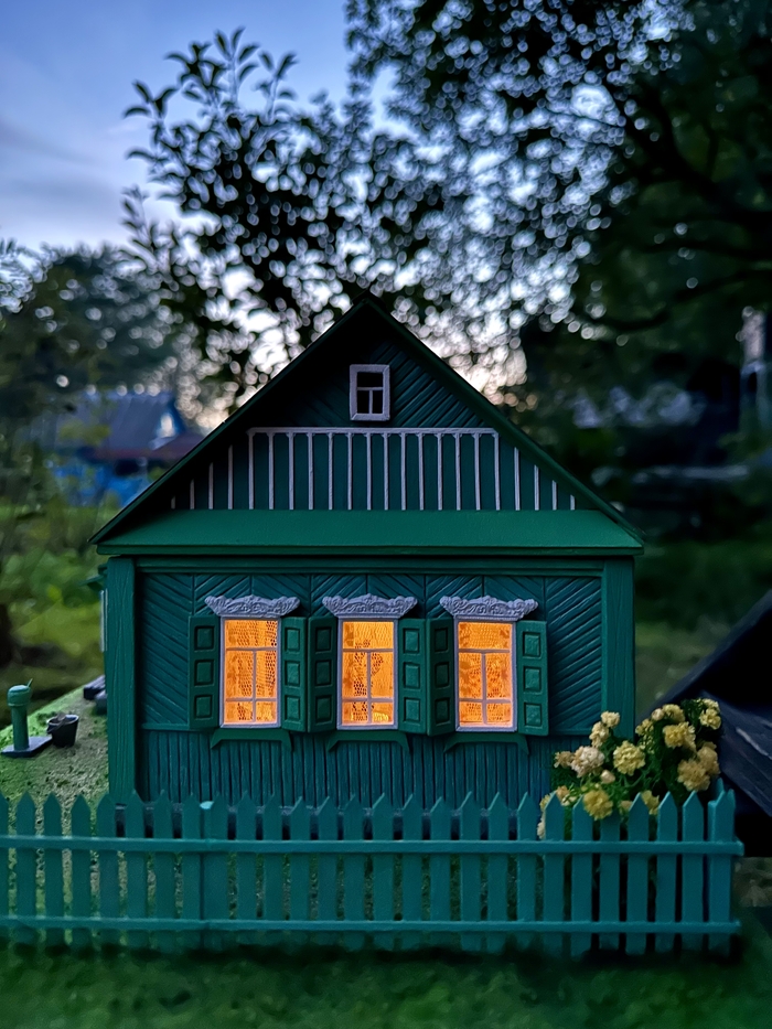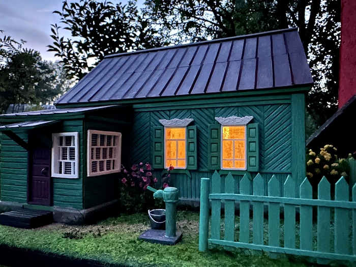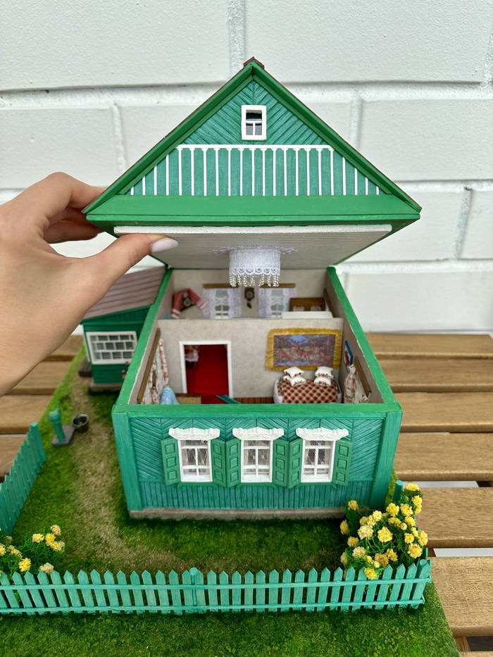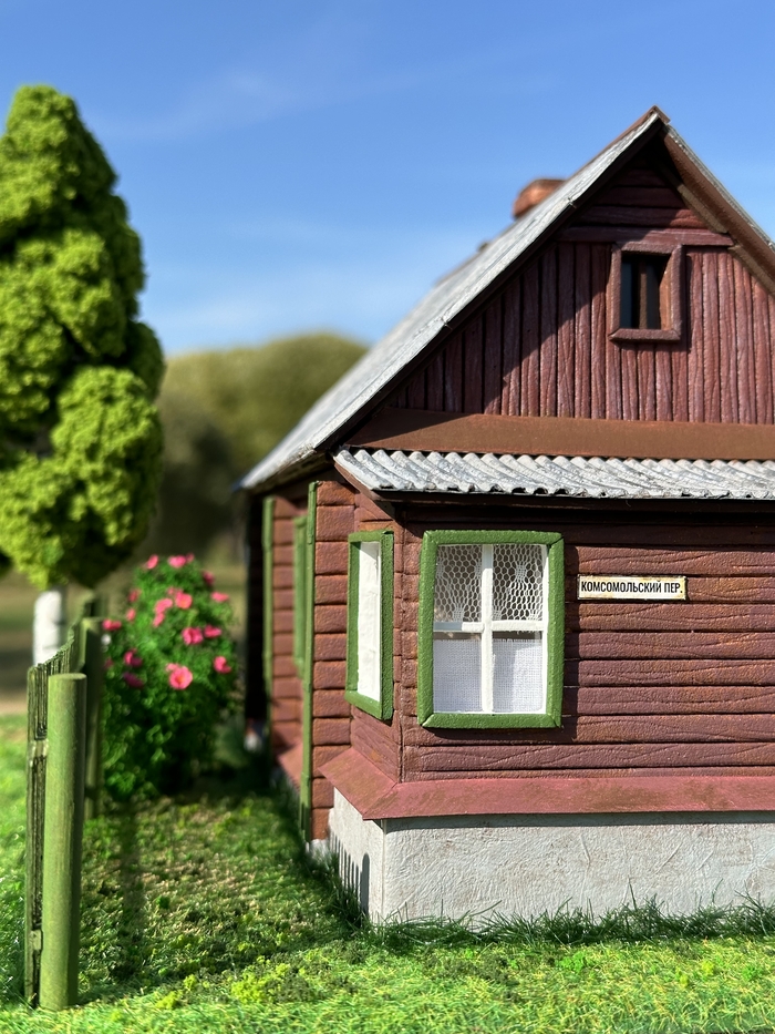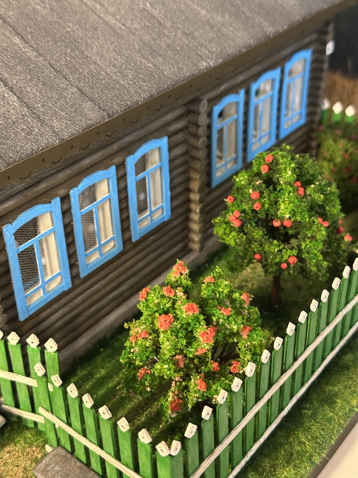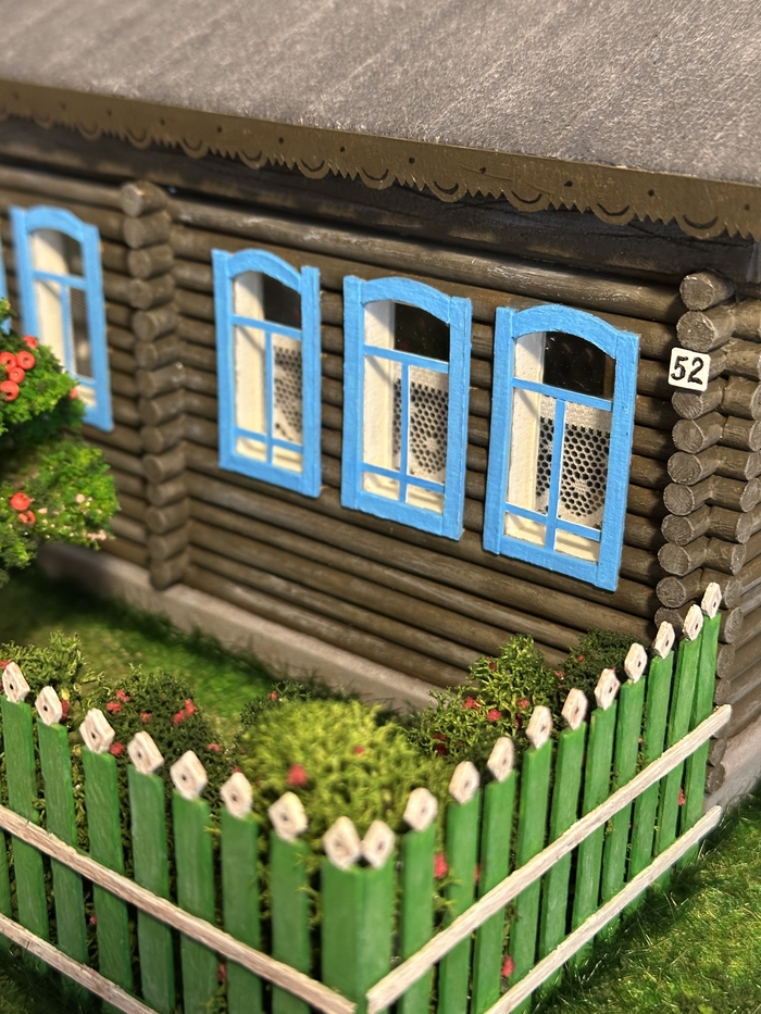Это подарок на 75-летний юбилей Михаила Григорьевича, который очень активно принимал участие в создании макета: рассказывал о доме, делал зарисовки и чертежи, так как фотографий было не очень много. Основная коммуникация была с его внучкой Юлией, это и была ее идея подарка для дедушки, но при создании макета помогали и другие члены семьи, за что им большая благодарность, ведь так картина стала полнее.