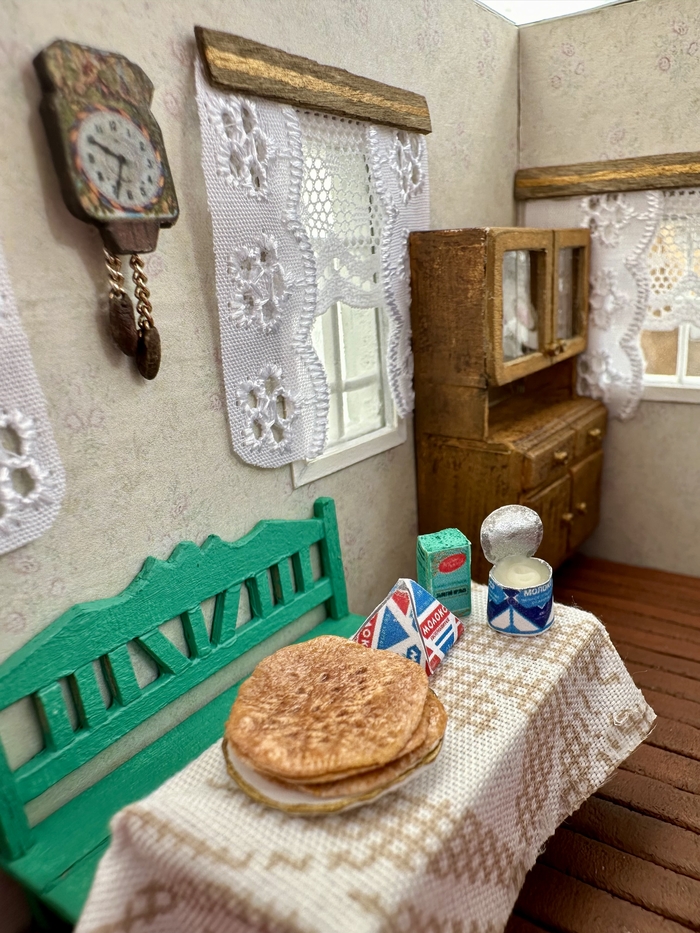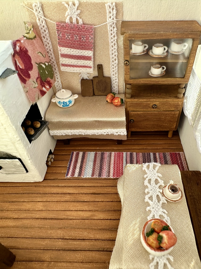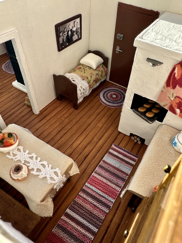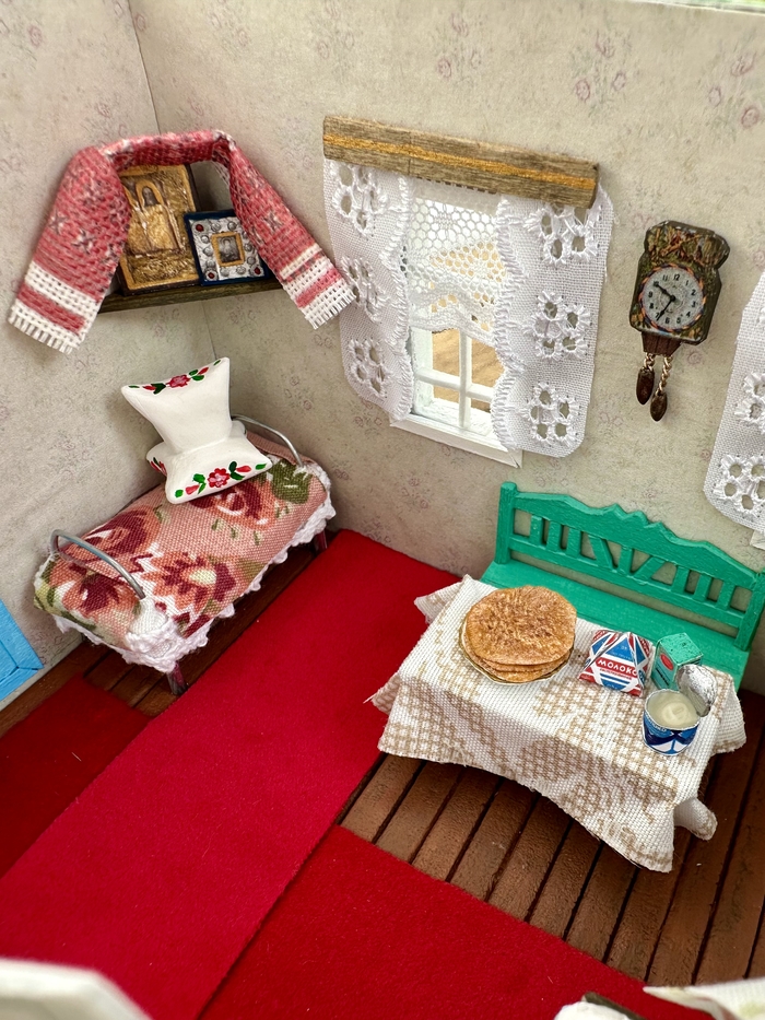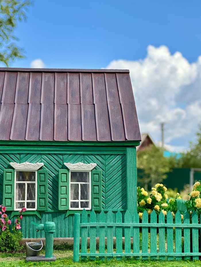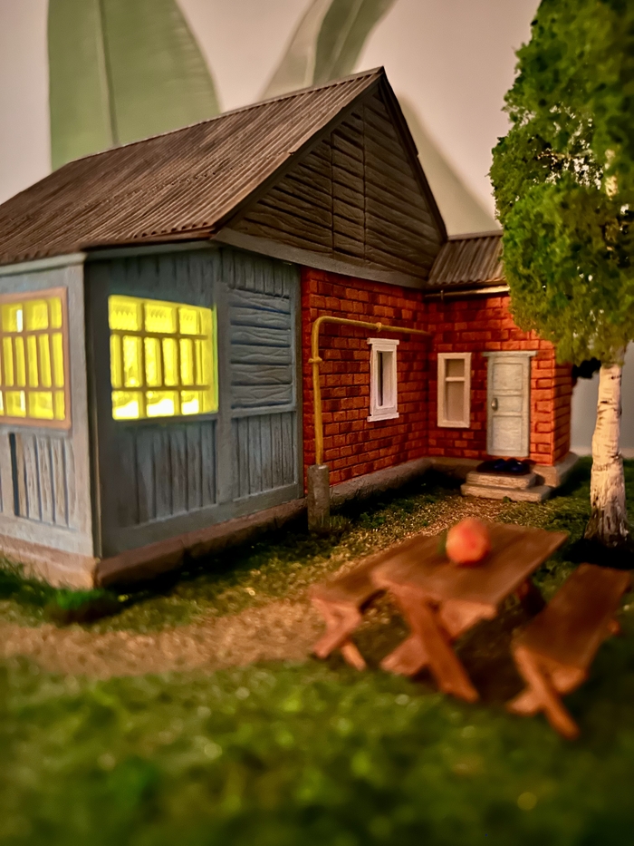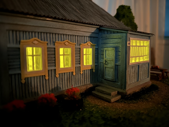 Это подарок на 75-летний юбилей Михаила Григорьевича, который очень активно принимал участие в создании макета: рассказывал о доме, делал зарисовки и чертежи, так как фотографий было не очень много. Основная коммуникация была с его внучкой Юлией, это и была ее идея подарка для дедушки, но при создании макета помогали и другие члены семьи, за что им большая благодарность, ведь так картина стала полнее.