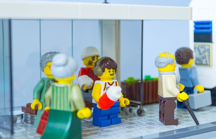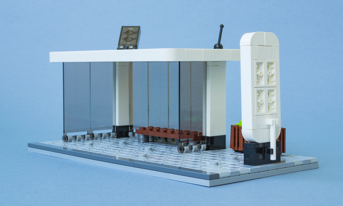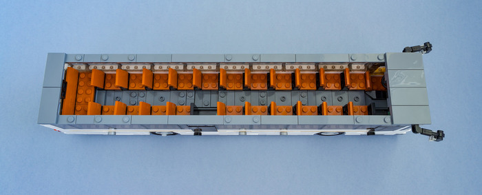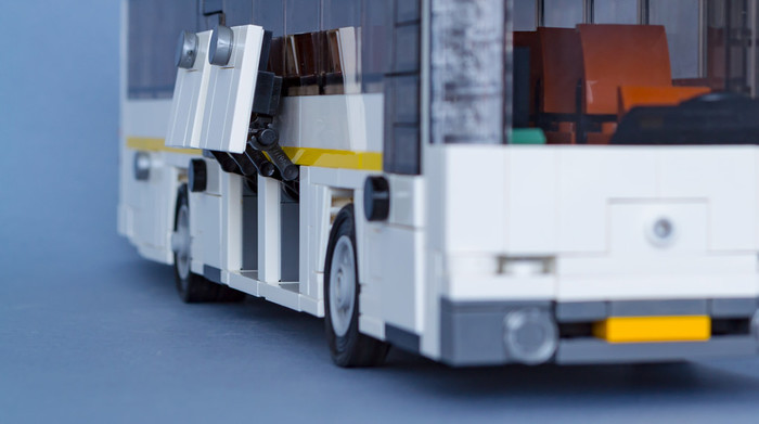 Моя модель построена в масштабе 1 Лего пин=30см, что примерно 1:38 и соответствует плюс минус масштабу минифигурки. Тем самым модель автобуса имеет ширину в 8 пинов и длину в 42 пина