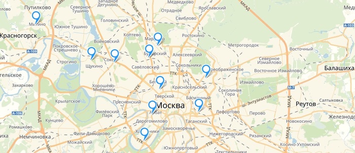 И тут наблюдается вторая "нестыковка ": 4 точки РСО расположены в ЦАО, 2 - СЗАО, 2 - САО, 1 - СВАО, 1 - ВАО. Ни одного пункта приема в ЮВАО, ЮАО, ЗАО.