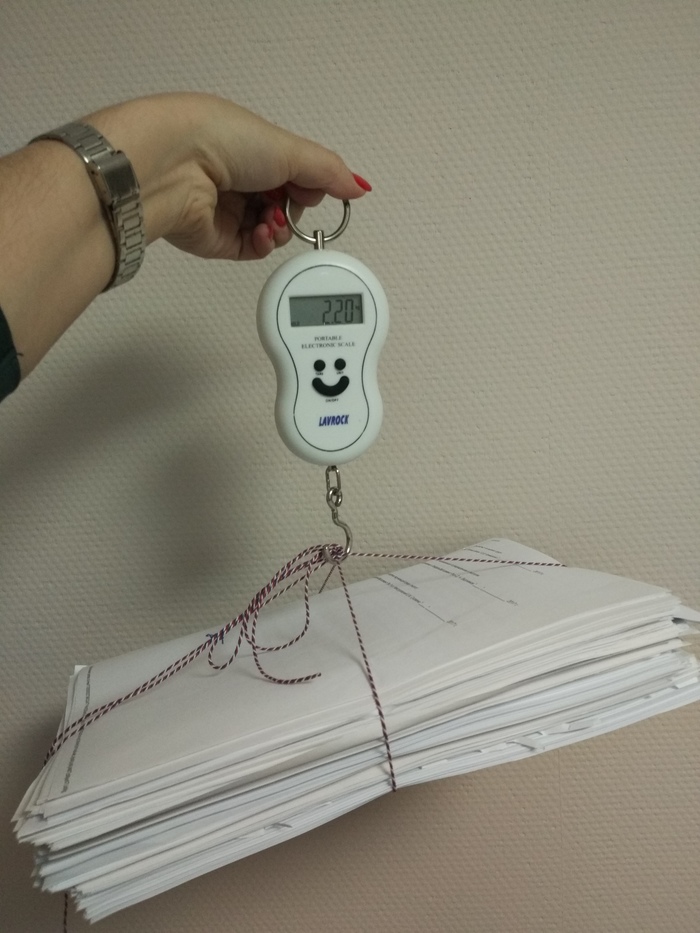 Для точности (и т.к. я планировала сдать макулатуру несколько раз, наивная) - бумага была взвешена и связана пачками чуть более 2-х кг: