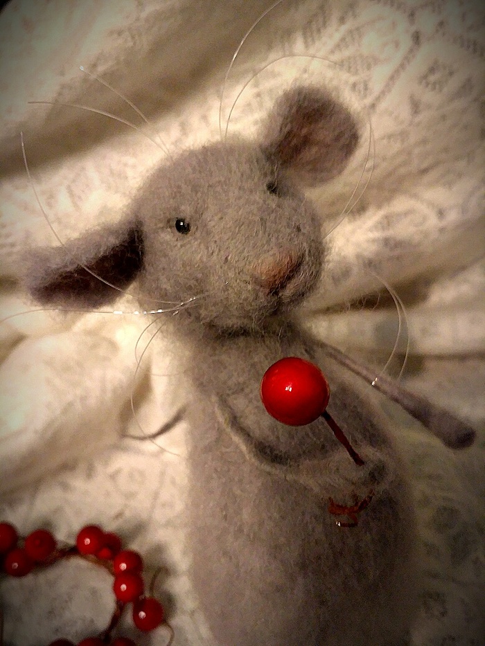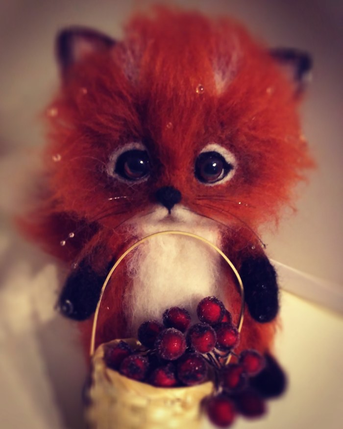 Тут спрашивали не делала ли я ещё хвостиков из войлока, и я поняла, что совсем запамятовала про Пафнутия )Сей милый малыш родился можно сказать сам, только я приобрела обратную иглу прям ладошки зачесались ее проверить,так он и появился)
