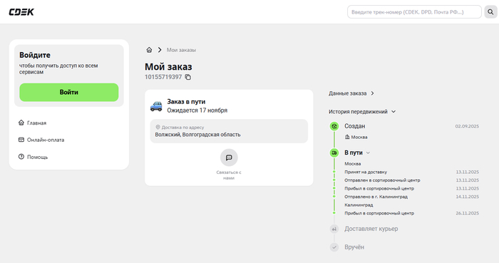 Девайс был отправлен CDEK'ом с российского склада и недолгое путешествие посылки из Москвы до Волжского должно было занять меньше недели. Посылка благополучно появилась в личном кабинете, все данные для доставки отображались правильно. Но буквально на следующий день, покинув московскую сортировку, посылка отправилась прямиком в Калининград.