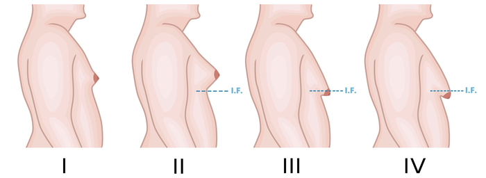 III степень: умеренный избыток жировой и железистой ткани, избыток кожи от легкой до умеренной степени, умеренный птоз.