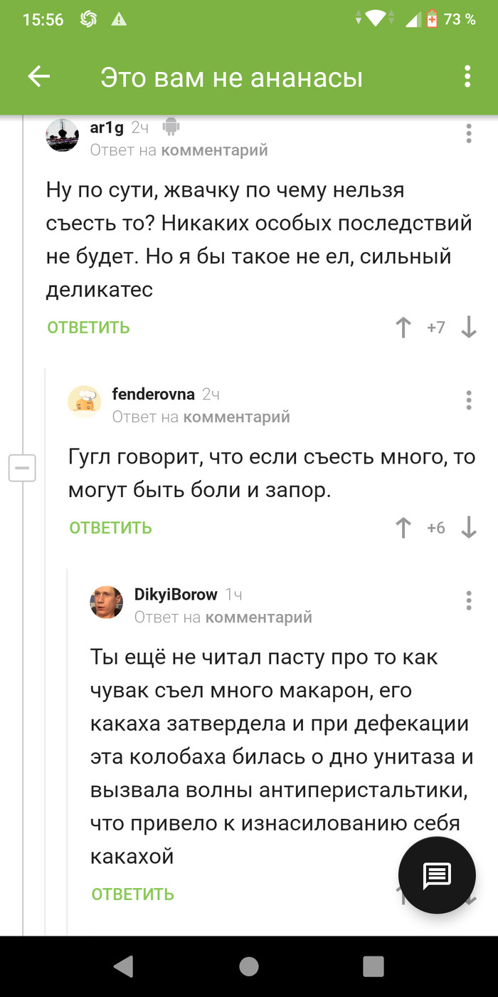 16 Dr0papayka Скриншоты комментов Спасибо за макаронную фобию 5 лет назад #comment_174399010 Показать полностью 1 Жвачка Фекалии Комментарии на Пикабу Скриншот Ещё 0