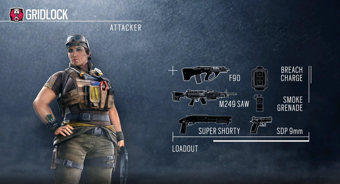 Оперативник атаки, спец. гаджетом которой является устройство, раскидывающее вокруг шипы, которые наносят урон и замедляют оперативников защиты, шумя при этом.