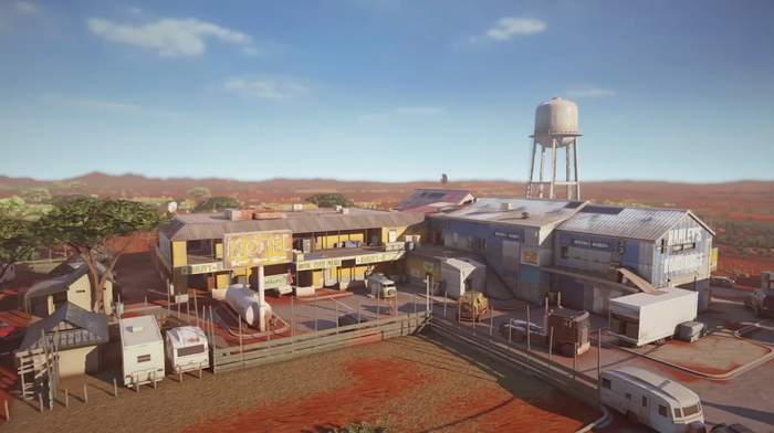 Карта представляет собой три здания, соединённые между собой, в форме буквы "L". Каждое из трёх зданий представлено своим цветом, равно как и наполнено прочими "достопримечательностями", для более простых колл-аутов