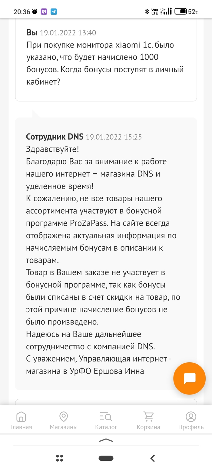 Сестра попросила заказать монитор xiaomi 1C, по всем магазина цена на тот момент была в районе 12 тыс. Решил выбрать DNS так как судя по странице было указано, что будут бонусы аж целых 1000. Монитор заказал, оплатил, забрал, а бонусов всё нет. Написал в службу обращений и оказалось, что они такие добрые и уже списали ВАШИ бонусы в цену этого монитора, там же зачеркнута цена и скидка как раз 1000 руб. То есть бонусы не поступая на счёт клиента уходят сразу в скидку, нет никаких транзакций бонуса в личном кабинете. Зачем им такие махинации? Это же наглый обман покупателя! Возможно ещё и с налогами, что то мутят, потому что бонусы не облагаются налогом как премиальное поощрение покупателю. В акции написано РЯДОМ с ценой, по мне так это и было написано рядом.
