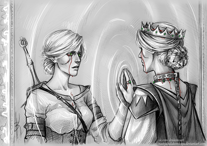 4 стадик и последний на данный момент. Рисовалось с себя, сидя со свечей для видения цвета и зеркалом. Именно поэтому Цири тут немного не Цирьная.