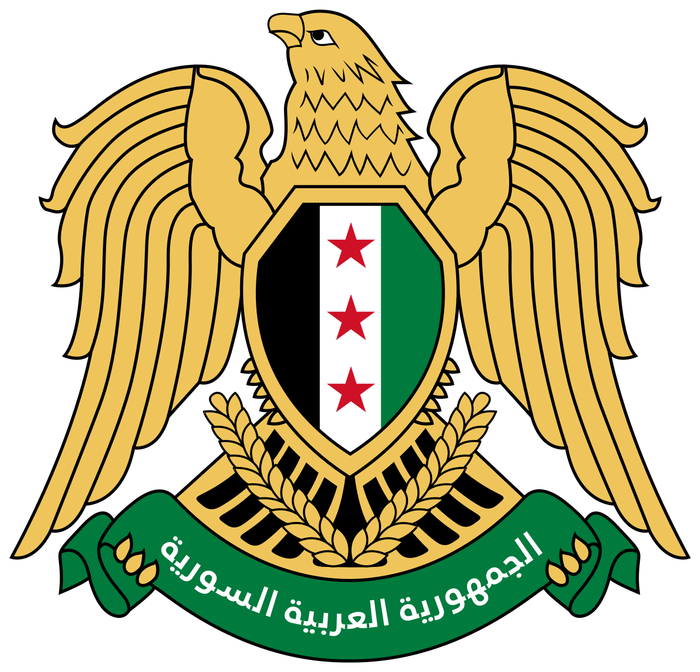 До этого герб Сирии изображал орла со щитом на груди, на котором были две звезды. В лапах птица держала ленту с надписью «Сирийская Арабская Республика».