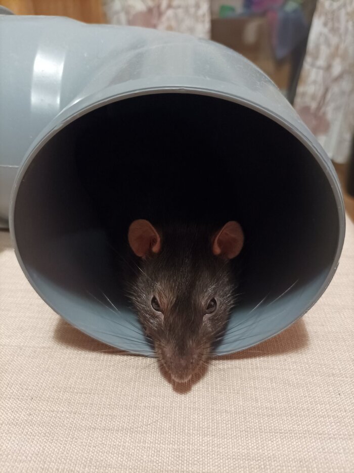 Впал в уныние от невозможности выплюнуть таблетки. Нашел ему новый вариант "гулять". Ложу тройник 110, сверху плед, внутрь тряпочку и Пикс там дрыхачит. Тройник нагревается от его тела до аццких температур, а крыса прет. Дряхлый уже, только спать хочет. Правда, плед был здорово попячен, когда Пикс был надолго оставлен спать, проснулся и развлекал себя. Молодежь его бодрит, проситься к ним гулять, чтобы покусать выскочек, они его побаиваются и ныкаются в клетку при извлечении деда. Все попытки общаться кончились воплями Пикселя и попыткой цапнуть супостата. Клетка у них идентичная, что приводит Пикса в недоумение. Как это? Кто у меня дом отжал?