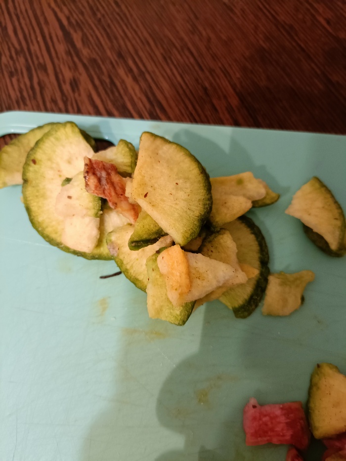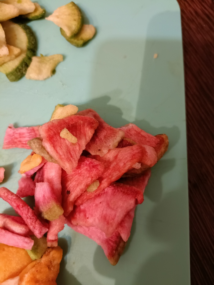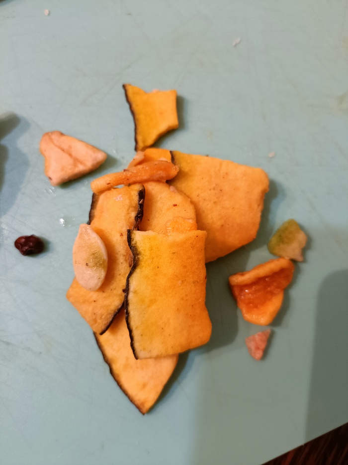 На вкус, кстати все эти изыски сладкие, но это далеко не фрукты. Этикетки на пакете не было, они просто лежат на полке в магазине. Я знаю, что в Светофоре мало нормальных товаров, но такого я не ожидал. С одной стороны производители охуели и внаглую обманывают, а с другой это настолько хитрожопо сделано, что снимаю шляпу. Покупать эту смесь мы, конечно, больше не будем, а вас я предупредил.