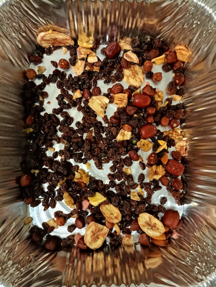 Изюм, фундук, грецкие орехи, сушеные бананы и наверное шиповник.