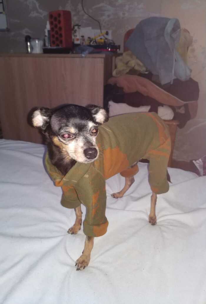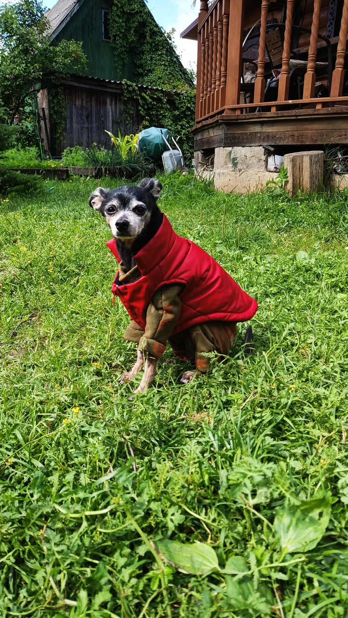 А вот навыки шитья мне неожиданно пригодились, когда в 2010 в моей жизни появился молодой кобель русского тоя. Изначально его брала себе моя мама, но когда поняла, что с уже имевшейся сукой другой породы кобель стыкуется плохо (а точнее стыкуется то он хорошо, но вот результат может получиться неожиданным). Дефабержировать его у родителей рука не поднялась, и пёс переехал ко мне. Как можно догадаться индустрия собачьей одежды на тот момент была развита гораздо хуже, поэтому находить собаке одежду было мягко говоря сложно, а то что имелось в продаже всё равно приходилось дорабатывать ̶п̶о̶ ̶м̶е̶с̶т̶у̶ ̶н̶а̶п̶и̶л̶ь̶н̶и̶к̶о̶м̶ . На первую зиму комбез я ему с горем пополам купила, он был неудобен, мешал, местами натирал и грел не всегда хорошо, но это было меньшим из зол. *