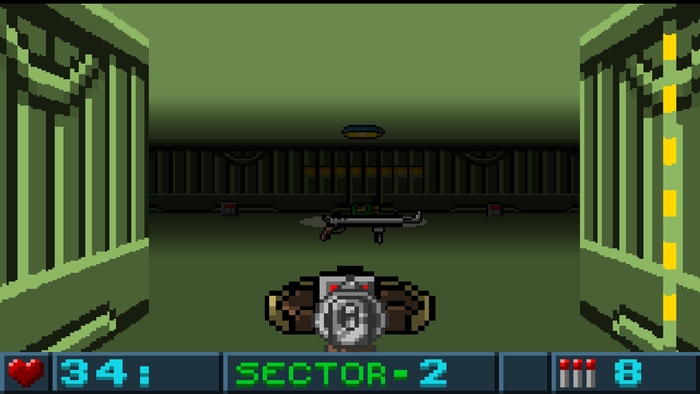 Основной смысл заключается в том, чтобы найти ключ, который выглядит как какая-то флешка или микросхема, убить противников, которые есть на карте, в том числе босса, и перейти в следующий сектор. В самом начале у вас 100 здоровья и 20 патронов, что является максимально возможным количеством, а пополнение запаса происходит с помощью лута карты, на которой то тут, то там разбросаны хилки и обоймы. Поскольку рукопашного боя в игре нет, патроны имеют очень большую значимость: если вы не можете стрелять - вы уже труп.
