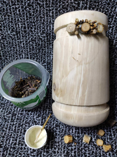 на другой специально оставлена часть коры дерева;