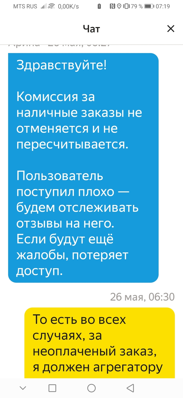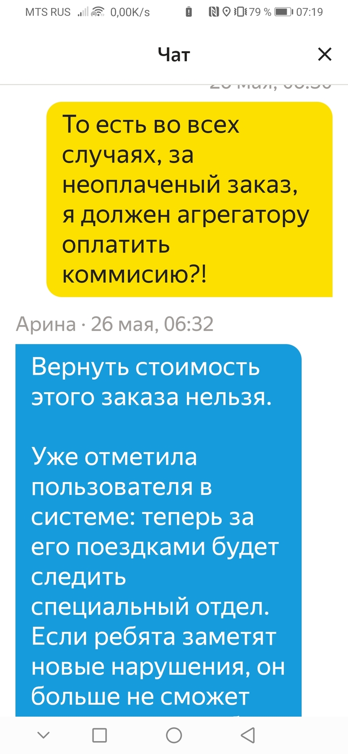 С удовольствием читаю посты с позитивом! Сам не нытик и человек абсолютно не анрессивный, но что то бомбануло!!! Иногда подрабатываю в Яндекс такси(или как говорят в Яшке) и в общем то банальная ситувция, клиент не оплатил поездку, все бы ничего, но особено огорчил "Партнер" списав комиссию за неоплаченный заказ... и диалог с ним, "поддержавший" в этой ситувции...