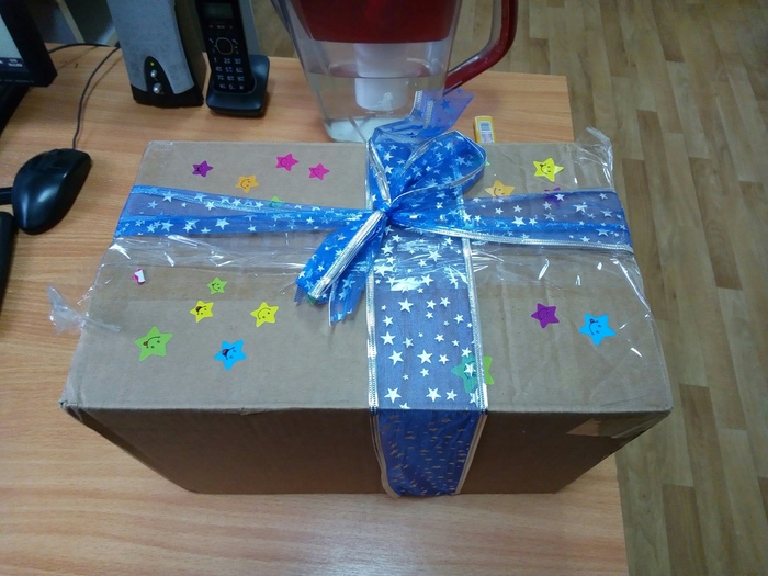 Галопирую домой, перерываю кладовку и вот она - мое сокровище! Чистая коробка подходящего размера! Упихиваю всю заныканное, играю в тетрис, спорю с внутренним перфекционистом и подарок готов!