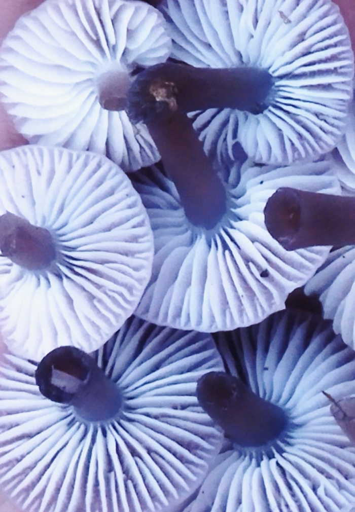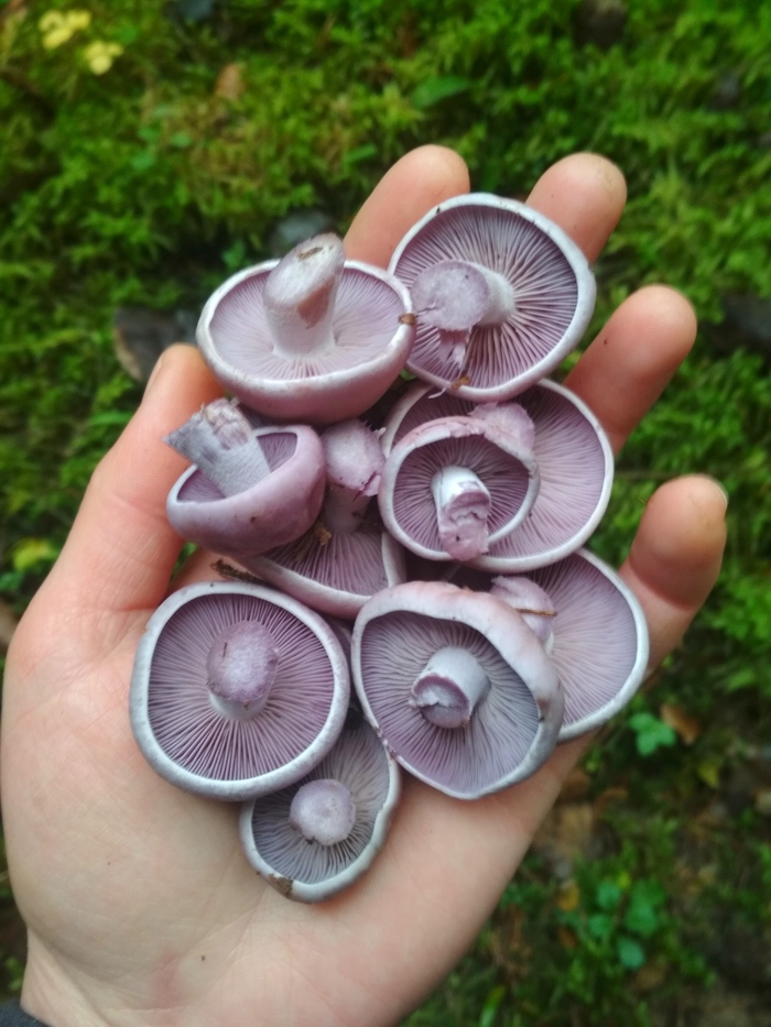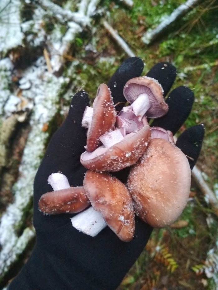 Рядовка фиолетовая. Очень мясистые грибы, с необычным парфюмерным ароматом(после варки аромат пропадает, лучше пару раз довести до кипения и воду слить). Молодые грибы можно мариновать как опята или делать грибную икру.
