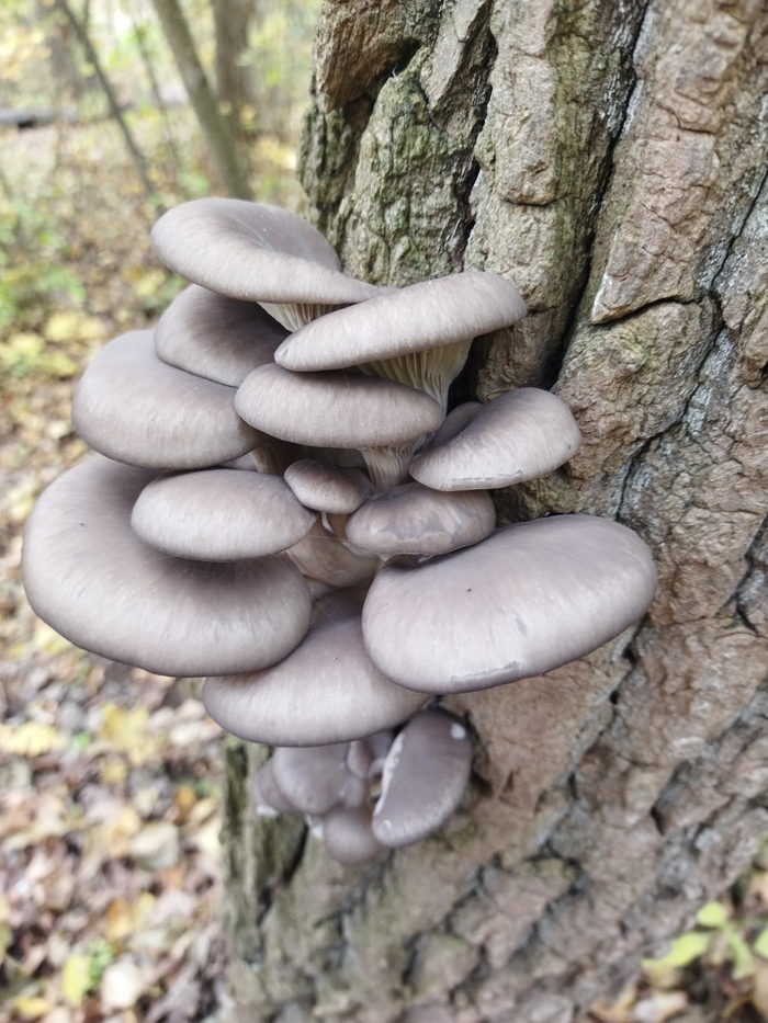 Вешенка. Эти грибы часто можно встретить в городских парках, растут на засохших тополях, березах и валежнике. Можно солить, жарить, делать начинку для блинов и пирожков. Имеют очень сильный грибной аромат, по текстуре довольно упругие, не такие резиновые как в магазине.