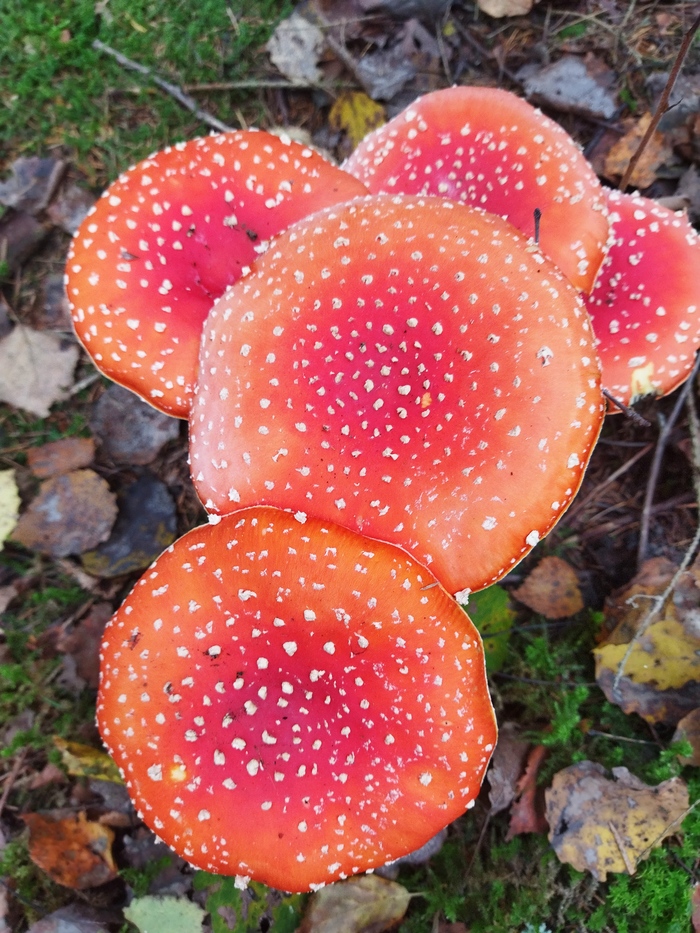 Ну и куда ж без мухоморов, осенью в лесу их полно, особенно в ельниках.