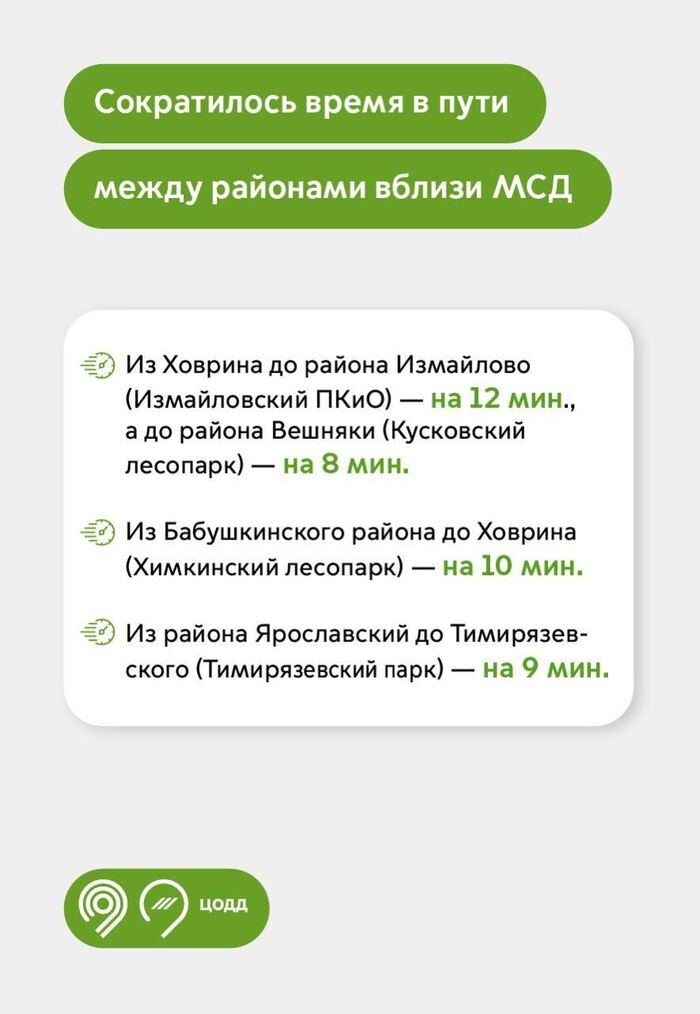 Согласно исследованию инновационного центра «Безопасный транспорт», более 70% жителей положительно относятся к новой магистрали, почти половина отмечает уменьшение времени в пути для привычных поездок. А каждый второй москвич считает, что после открытия МСД перемещаться между районами стало удобнее.