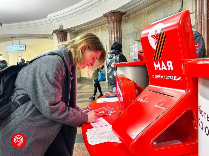 В метро на станциях «Курская», «Площадь Революции» и «Парк культуры» на стойках «Живое общение» установили ящики для отправки поздравительных открыток. Акцию провели совместно с Почтой России, письма доставят по всей России.