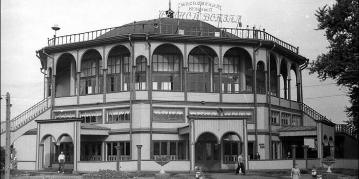 Первое здание Южного речного вокзала удивляло необычной архитектурой, несмотря на то, что строилось как временное.